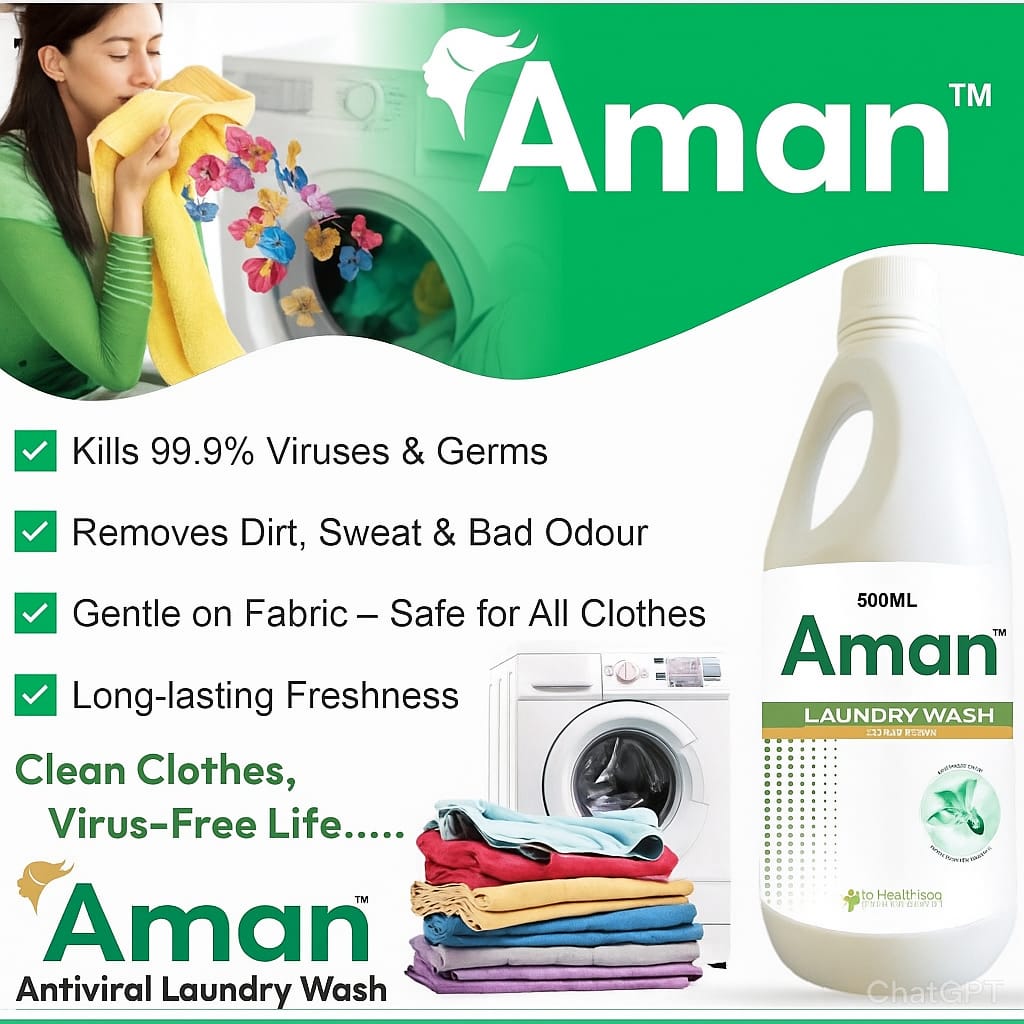 Aman Liquid Laundry Wash is specially formulated to provide deep cleaning performance while being gentle on fabrics. Designed for both machine wash and hand wash, this advanced liquid detergent helps remove dirt, stains, and odors effectively without damaging cloth fibers.